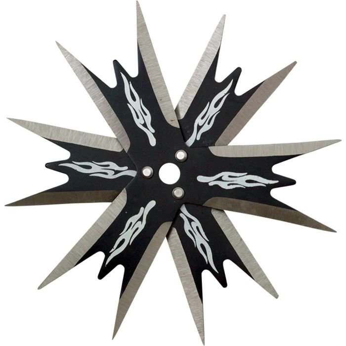 4" Black 12 point Stainless Steel throwing star with flame design 12 Point Throwing Star 4” Diameter 1 pc w/ nylon sheath