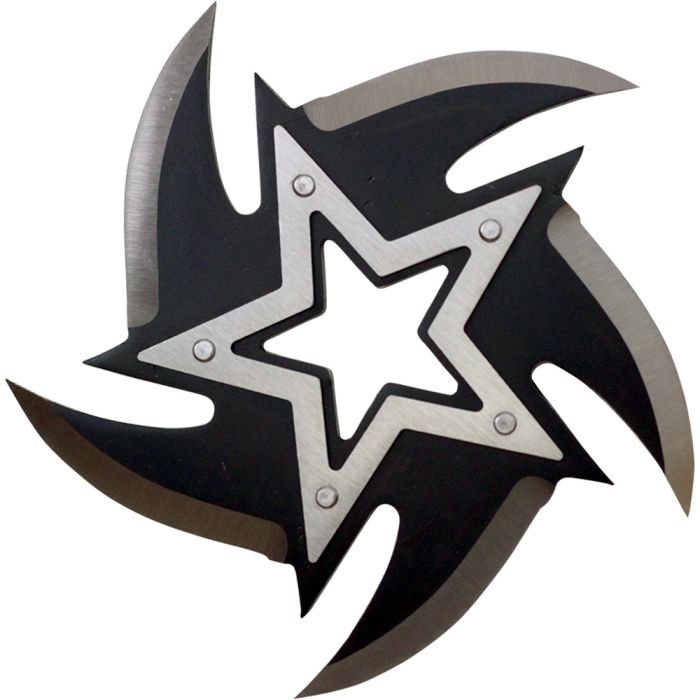 4" Black 5 point Stainless Steel throwing star with chrome star in middle